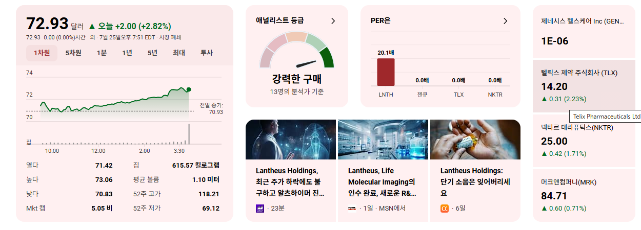- **장기적 관점의 가치 투자자** 또는 **낮은 변동성과 안정적인 성장을 선호하는 투자자**에게 LNTH는 매력적인 선택지가 될 수 있습니다.