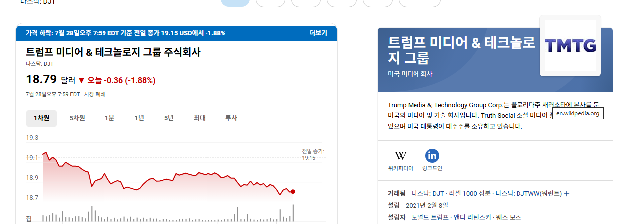 - 높은 위험 감수 능력 요구: DJT는 변동성이 매우 크기 때문에 단기적인 시세차익을 노리는 투자자에게 적합할 수 있으나, 장기적인 관점에서의 투자 매력도는 아직 불확실합니다.