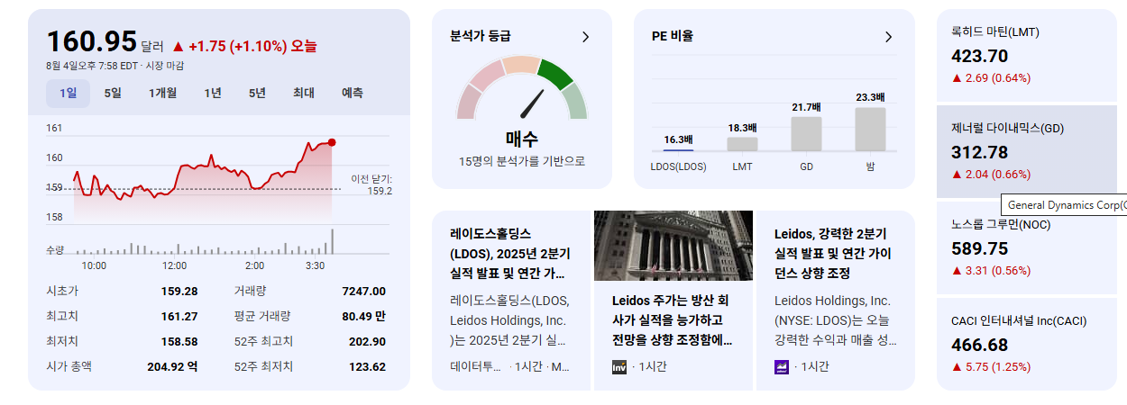 - 이번 레이도스(LDOS)의 실적 발표와 이익 전망치 상향 조정은 회사가 현재의 지정학적 상황을 성장 기회로 매우 효과적으로 활용하고 있음을 보여줍니다.