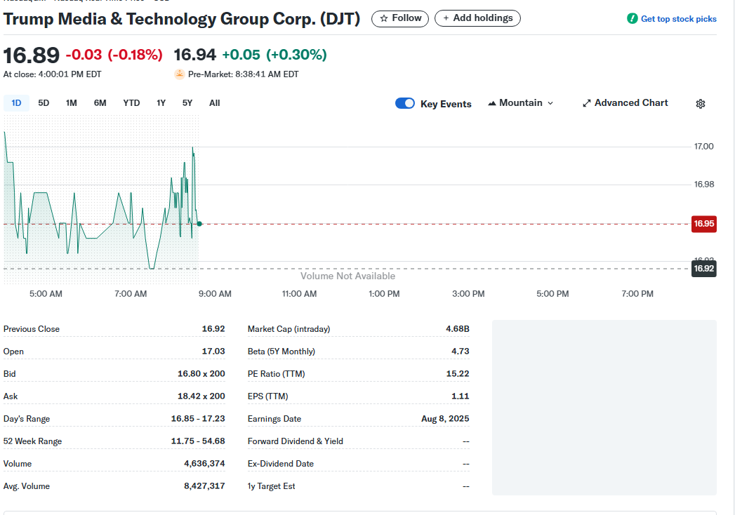 - 기사 하단 'What's trending' 섹션에 DJT가 명시적으로 포함된 것은 투자자들 사이에서 DJT에 대한 높은 관심과 검색량이 유지되고 있음을 의미합니다.