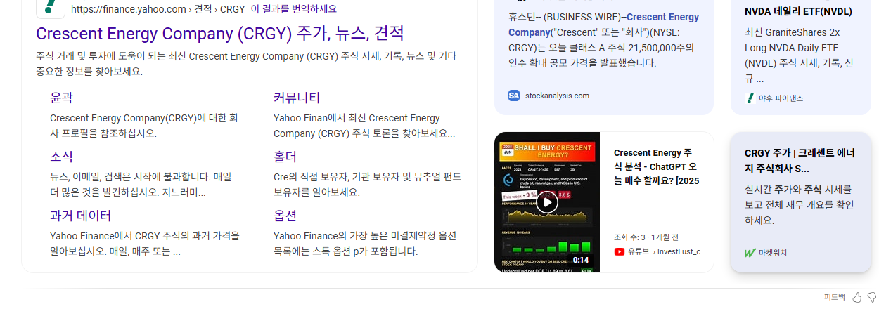 - 투자자 시사점: CRGY는 현재 낮은 밸류에이션, 탄탄한 현금 흐름, 그리고 KKR의 강력한 지원을 바탕으로 매력적인 위험-보상 프로파일을 제공하는 에너지 기업입니다. 특히 가치와 성장을 동시에 추구하며 배당 수익을 중요시하는 투자자에게 흥미로운 종목이 될 수 있습니다. 다만, 에너지 섹터 전반의 거시 경제 및 원자재 시장 변동성을 충분히 고려하여 분산 투자 관점에서 접근하는 것이 현명해 보입니다. 장기적인 관점에서 기업의 M&A 전략 실행 및 자산 운용 성과를 꾸준히 모니터링할 필요가 있습니다.
