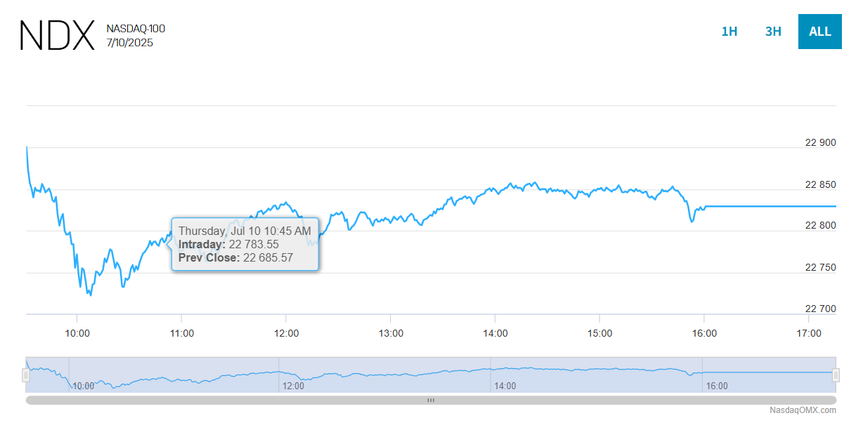 - 여기서 'NASDAQ'은 특정 기업(Nasdaq, Inc., 티커 NDAQ)을 지칭하는 것이 아니라, 기술주와 성장주가 집중되어 상장된 나스닥 증권거래소의 종합 주가지수인 나스닥 종합지수(Nasdaq Composite Index)를 의미합니다.