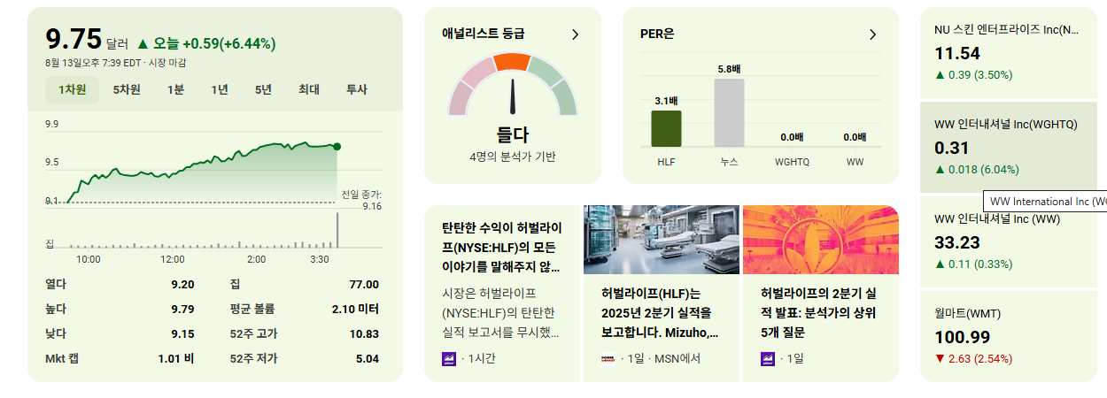 - 기대 이상의 2분기 어닝 시즌: 기업들의 전반적인 실적 개선은 HLF와 같은 개별 기업에도 긍정적인 간접 효과를 줄 수 있습니다. 투자 심리 개선으로 시장 전반에 자금이 유입될 가능성이 있습니다.