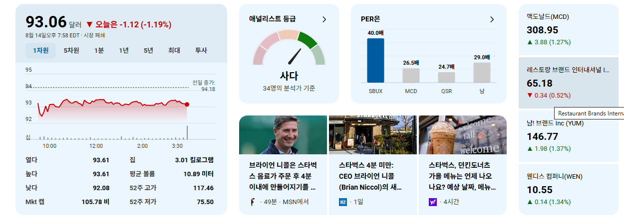 미국 주식 분석: 스타벅스(SBUX), 중국 시장의 '쓴맛'과 새로운 정체성 찾기 본문