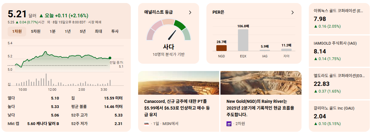• 글로벌 경제의 불확실성이 커질 때 금은 안전 자산으로서의 가치가 부각되며, 이는 NGD와 같은 금광 회사들에게 긍정적인 시장 환경을 제공할 수 있습니다.