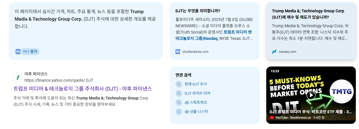 - DJT는 매우 투기적인 성격이 강한 투자 대상입니다. 기업의 근본적인 재무 성과, 사용자 성장률, 광고 매출 추이를 면밀히 분석하는 것이 중요합니다.