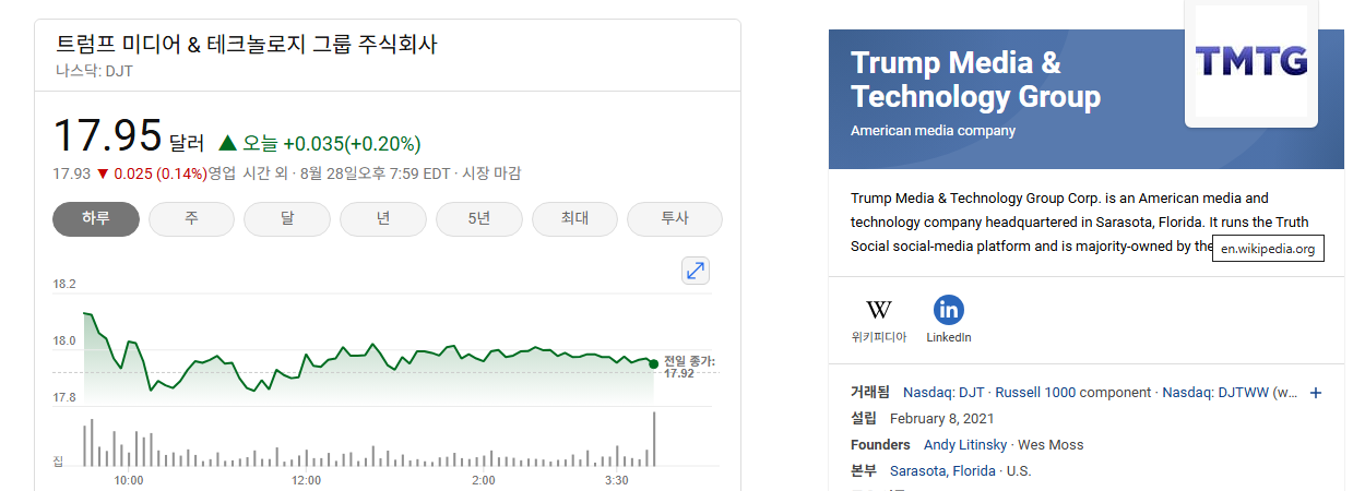 - 도널드 트럼프 전 대통령과의 강력한 연관성: 도널드 트럼프 미디어 & 테크놀로지 그룹(DJT)은 도널드 트럼프 전 대통령이 설립한 미디어 회사입니다. 그의 정치적 활동, 발언, 그리고 대중적 인지도와 직접적으로 연결되어 있어, 다른 일반적인 미디어 기업과는 다른 독특한 투자 심리와 변동성을 가집니다.