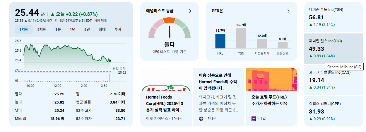 Yahoo Finance에서 2025년 8월 29일 보도한 기사에 따르면, Hormel Foods(HRL)에 대해 "높아진 원자재 비용으로 인해 이익 전망을 하향 조정했으며, 이로 인해 주가가 급락했다"고 밝혔습니다. 본 블로그에서는 해당 기사 내용을 바탕으로 HRL에 미치는 영향을 평가합니다.
