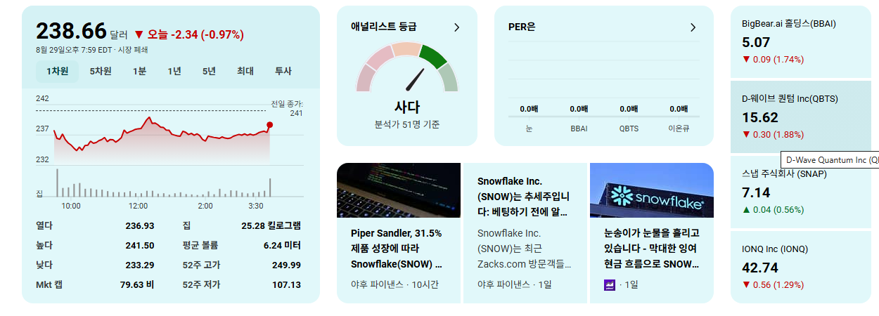 - 장기적 관점의 접근: 이번 지멘스와의 파트너십은 스노우플레이크의 장기적인 성장 잠재력을 높이는 중요한 모멘텀으로 해석될 수 있습니다. 단기적인 주가 움직임보다는 회사의 본질적인 가치와 성장 가능성에 주목하는 것이 중요합니다.