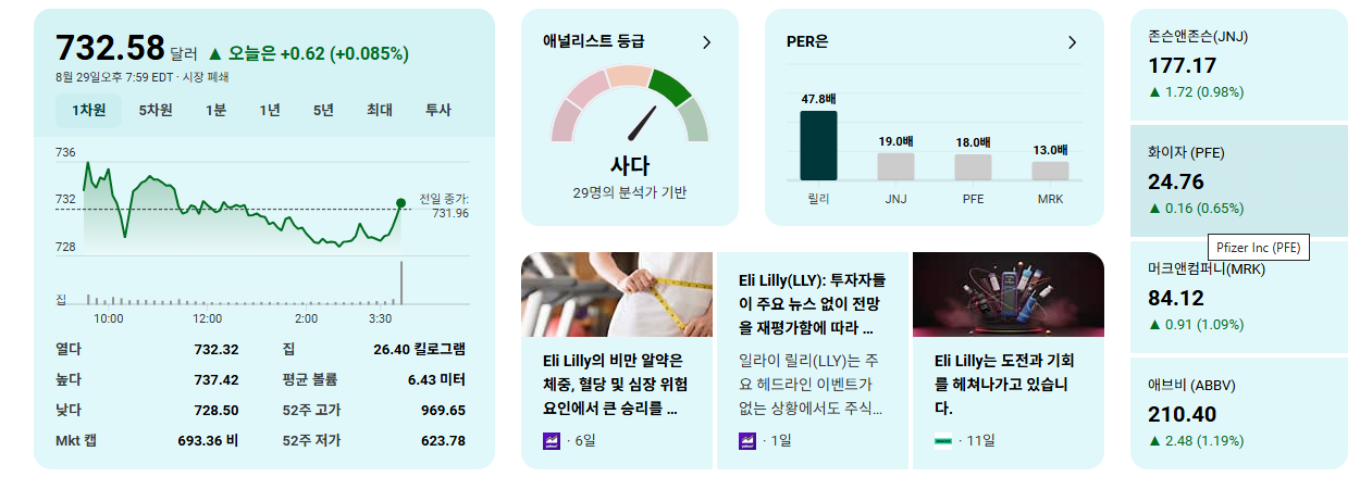 - 여전히 매력적인 성장주, 그러나 신중한 접근 필요: 비만 치료제 시장의 폭발적인 성장 잠재력과 LLY의 혁신 능력, 그리고 현재의 시장 리더십을 고려할 때, LLY는 여전히 매력적인 성장주입니다. 다만, 제네릭 압박과 같은 장기적인 리스크 요인을 염두에 둔 신중한 접근과 지속적인 모니터링이 필요합니다.