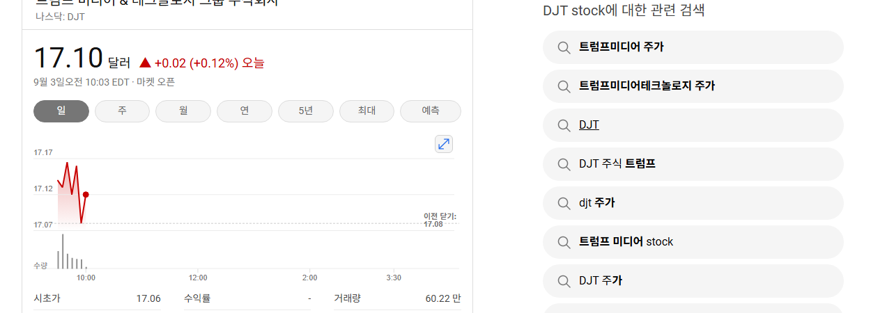 - 시장 관심도 유지: 다른 뉴스 기사들에서 DJT가 'What's trending' 목록에 지속적으로 등장하는 것은 시장이 DJT에 대해 높은 관심을 가지고 있음을 시사합니다. 트럼프 전 대통령 관련 뉴스는 이러한 관심도를 유지하는 데 기여합니다.