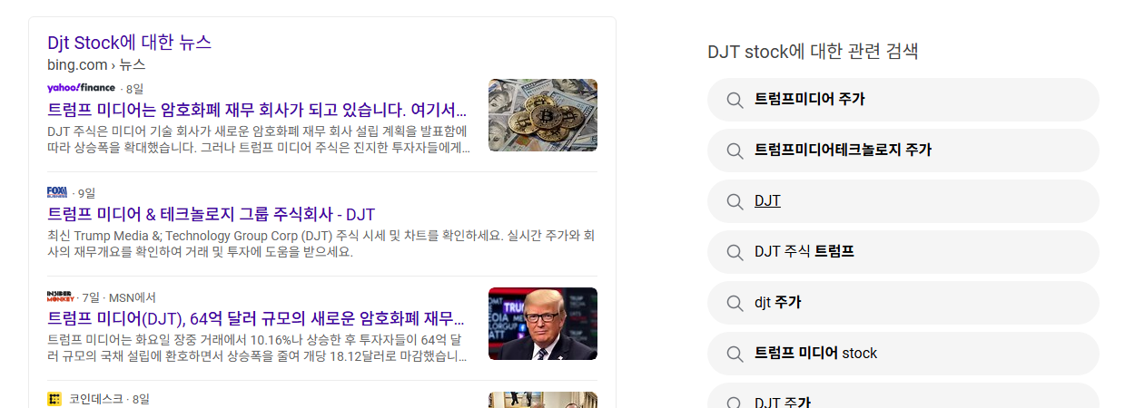 제공된 기사들은 직접적으로 DJT의 사업 내용이나 실적에 대한 정보를 담고 있지는 않지만, 야후 파이낸스 트렌딩 종목 목록에 DJT가 포함되어 있다는 점은 그 자체로 중요한 의미를 가집니다.