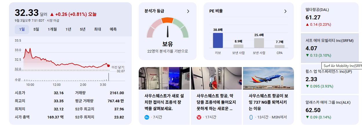 - LUV에 대한 투자 결정은 이번 뉴스보다는 항공 여행 수요, 유가 변동, 인건비, 경쟁 환경, 거시 경제 지표, 그리고 Southwest Airlines 자체의 경영 전략 및 재무 성과 등 훨씬 더 중요한 요소들을 기반으로 해야 합니다.