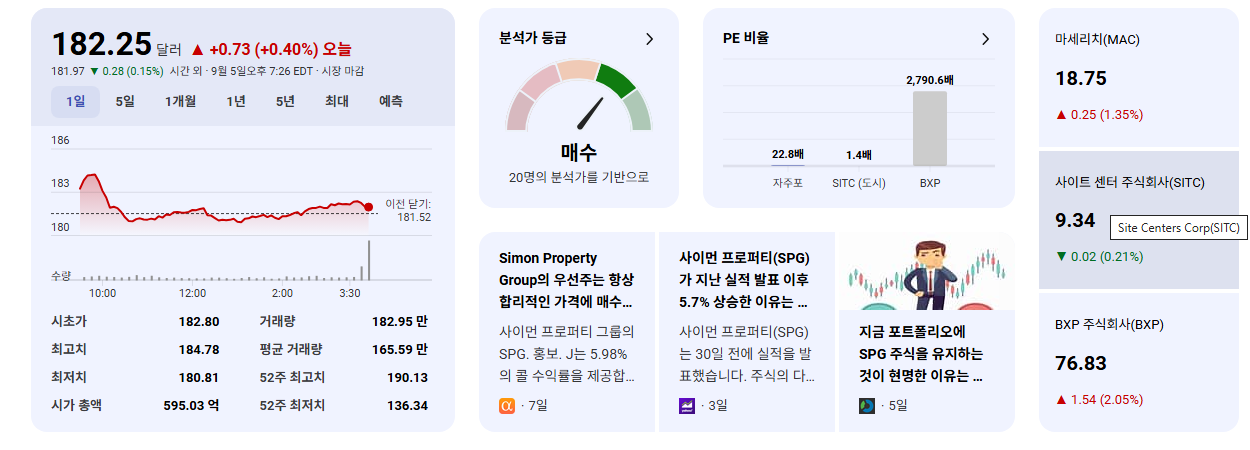 Argus (Yahoo Finance)에서 2025년 9월 5일 보도한 기사에 따르면, Simon Property Group(SPG)에 대해 "배당 수익률이 업계 평균을 상회한다"는 분석이 있었습니다. 본 보고서는 SPG가 하이엔드 쇼핑몰과 아웃렛 센터를 소유한 대형 리테일 REIT이며, 핵심 부동산 사업에 집중하기 위해 리테일 브랜드 지분 매각을 완료했고 높은 점유율을 유지하며 안정적인 수익을 창출하고 있다고 강조합니다. 본 블로그에서는 해당 기사 내용을 바탕으로 SPG에 미치는 영향을 평가합니다.