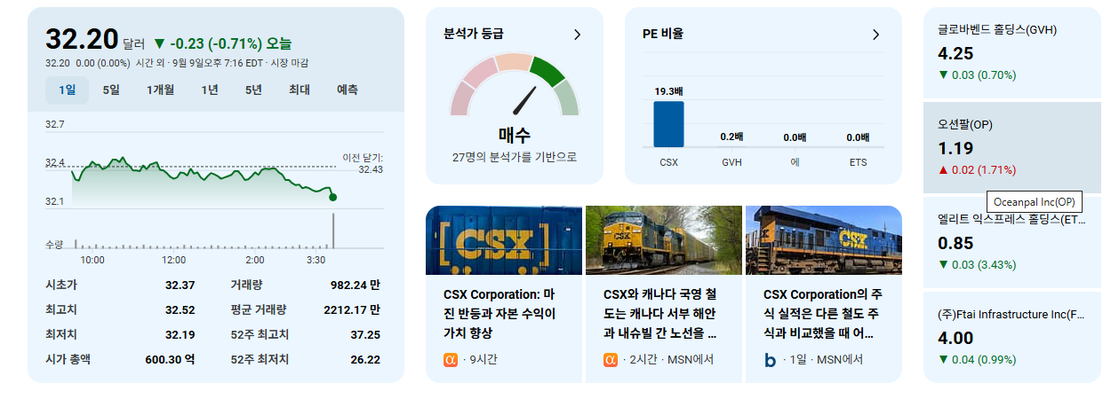 - 단기적인 시장 조정으로 인한 주가 하락은 장기적인 관점에서 매력적인 매수 기회를 제공할 수 있습니다. 특히 CSX는 꾸준히 배당을 지급하고 성장시키는 기업으로, 변동성 장세에서 인컴 투자자들에게는 매력적인 대안이 될 수 있습니다.