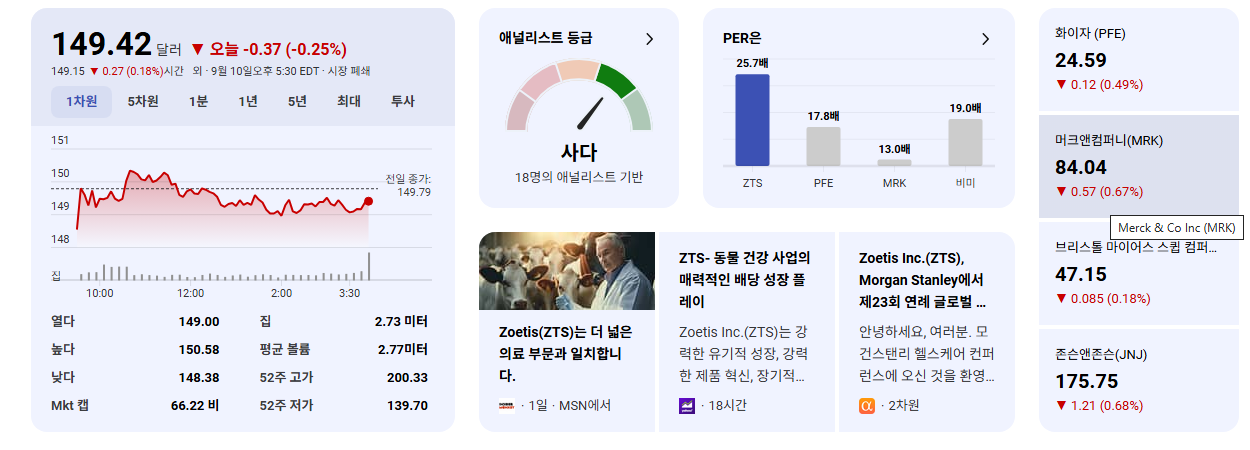 • 경기 방어적 특성 고려: 경기 침체 우려가 있을 때 안정적인 수익을 추구하는 투자자에게는 ZTS의 경기 방어적 특성이 매력적인 요소로 작용할 수 있습니다.