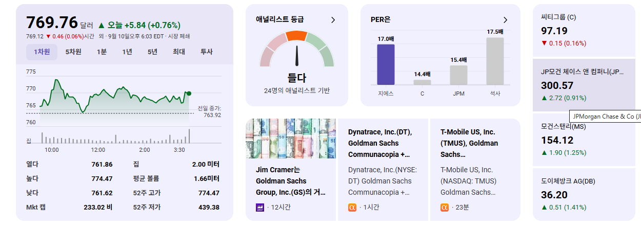 - 골드만삭스(GS)는 세계적인 투자 은행 및 금융 서비스 기업으로, 투자 은행(IB), 자산 관리, 증권 거래 등 광범위한 사업 포트폴리오를 보유하고 있습니다.