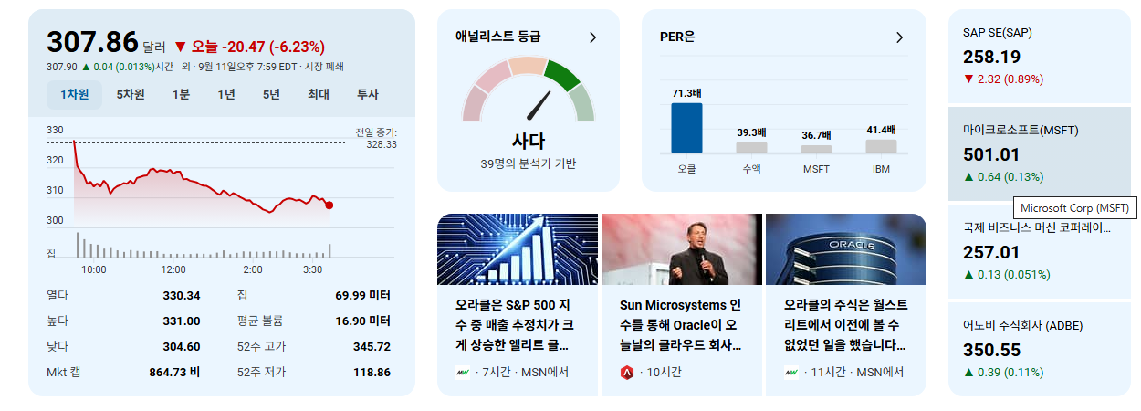 • 기사 보도 후 ORCL의 주가는 무려 37% 급등하여 사상 최고가를 경신했습니다.