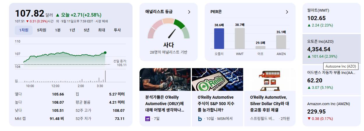 • ORLY는 2025년 9월 10일 오전 거래에서 $107.11의 새로운 사상 최고가를 기록했습니다. 이는 투자자들의 강한 신뢰와 매수세를 반영합니다.