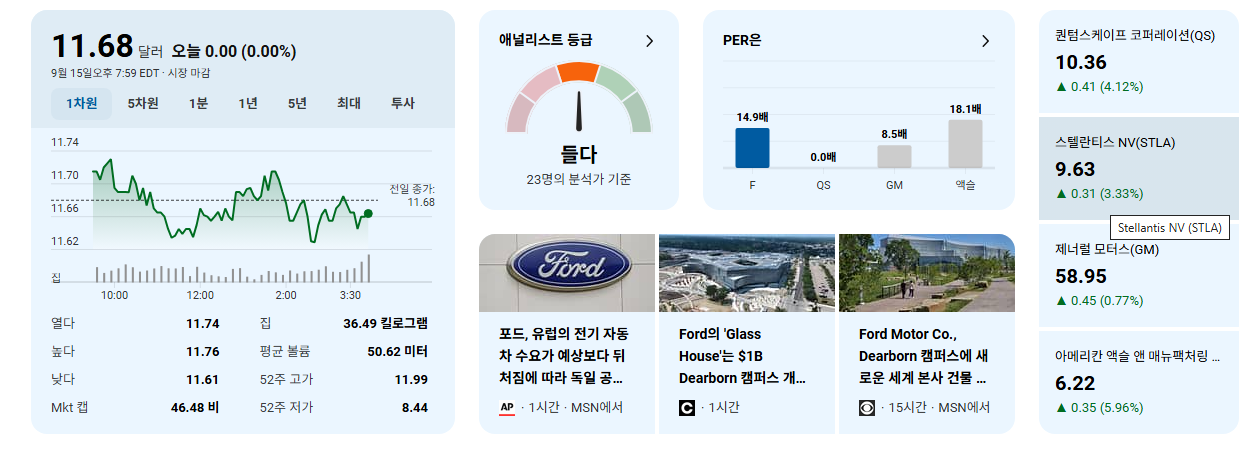 - 단기적 관점: 이번 소식은 포드(F)에 대한 부정적인 투자 심리를 유발할 가능성이 높습니다. 유럽 전기차 시장의 불확실성은 포드의 주가에 하방 압력으로 작용할 수 있습니다.