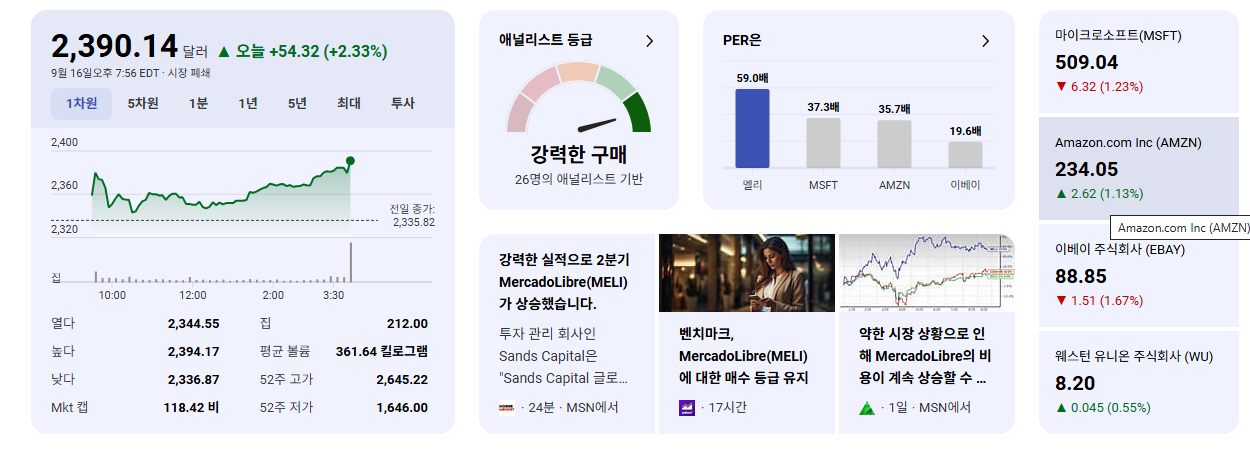 - MELI는 매출과 영업이익 모두 컨센서스 예상을 상회하는 실적을 발표하며 견고한 사업 기반을 재확인했습니다. 이는 투자자들에게 긍정적인 신호로 작용합니다.