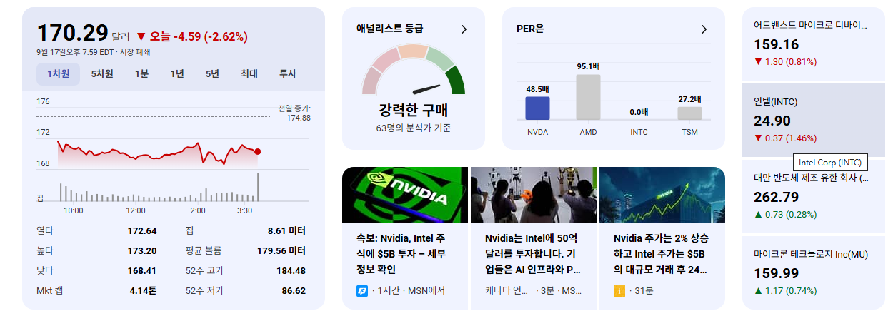 • 단기적 영향 미미, 장기적 시사점: 해당 뉴스는 엔비디아의 단기 실적이나 주가에 즉각적인 큰 영향을 미치기보다는, 반도체 산업의 장기적인 경쟁 환경 변화를 암시하는 중요한 신호로 받아들여야 합니다.