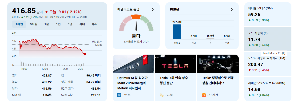 - 현재 테슬라는 단기적인 실적 압박과 밸류에이션 부담을 안고 있지만, 혁신적인 미래 사업에 대한 기대감이 공존하는 주식입니다.