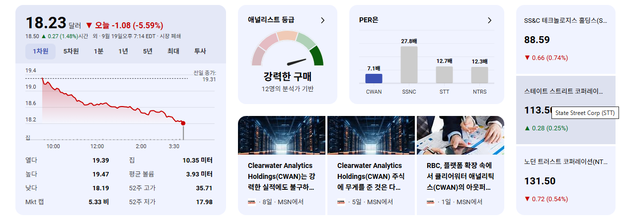 - 투자 심리 개선: RBC의 긍정적인 투자의견 재확인 및 목표주가 제시(현 주가 약 $19 대비 상당한 상승 여력)는 시장의 CWAN에 대한 신뢰도를 높이고 긍정적인 투자 심리를 유도할 수 있습니다.