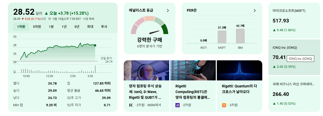 • 시장의 즉각적 반응: 계약 발표 후 RGTI의 주가는 15.4% 급등하며 투자자들의 긍정적인 기대를 반영했습니다.