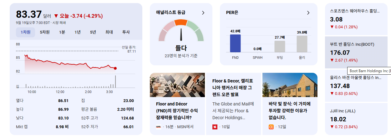 - 지난 52주 동안 FND 주가는 30.37% 하락하며 시장의 우려를 반영했습니다.