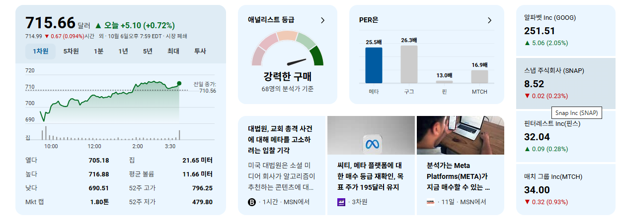 - 기관 투자자의 관심: Alger Spectra Fund와 같이 메타의 AI 기반 광고 사업의 견고함과 XR 및 AI 인프라 투자를 통한 장기적 성장 잠재력을 인정하는 기관 투자자들은 지속적인 관심을 보일 것으로 예상됩니다.