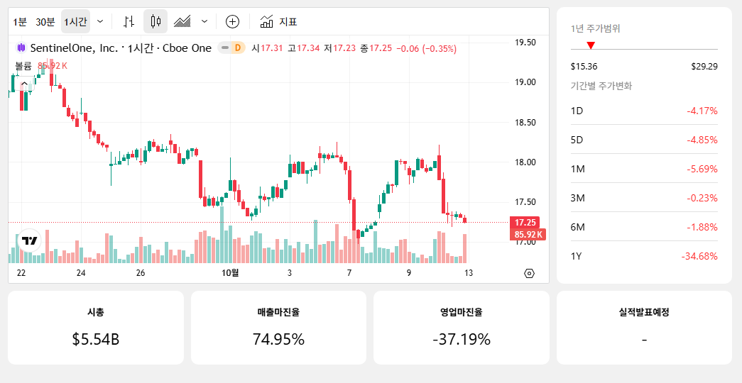 센티넬 원 S (SentinelOne), 월스트리트 급락 속 더욱 큰 폭의 하락, 투자 전략은? 본문