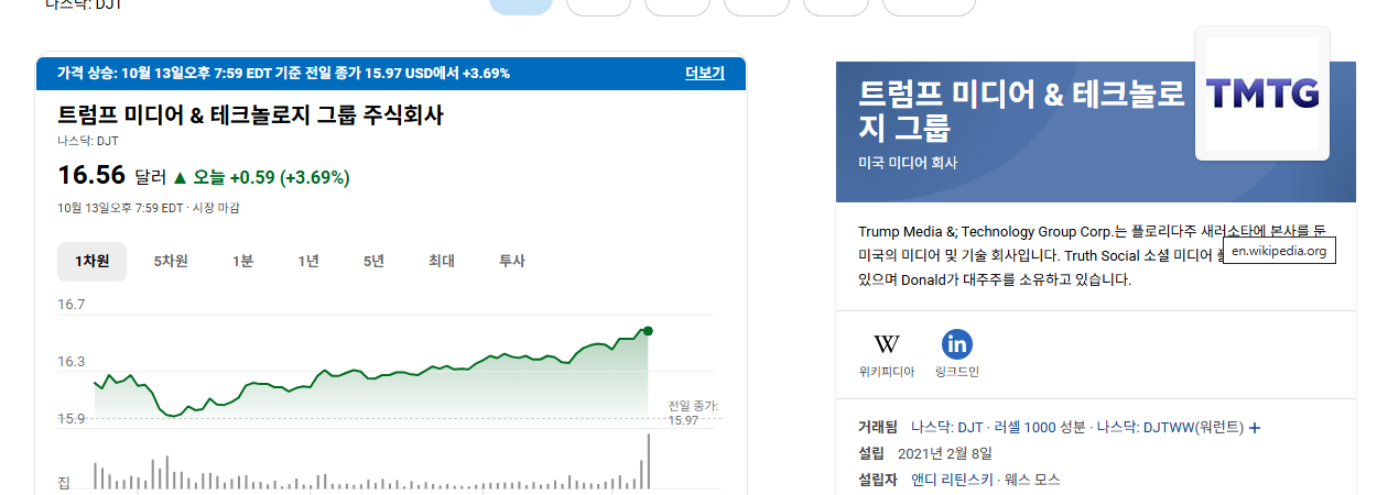 - 그러나 DJT는 정치적 이슈와 높은 변동성을 특징으로 하므로, 시장의 작은 뉴스나 매크로 지표 변화, 혹은 회사 관련 발표에 따라 주가가 급등락할 가능성이 매우 높습니다.