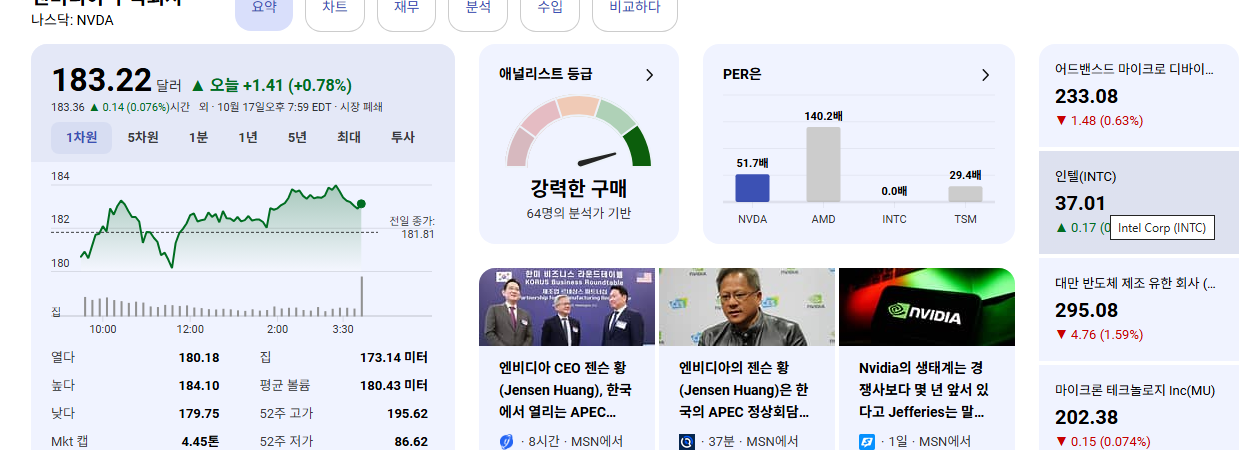 - 보수적 투자자: 높은 밸류에이션에 대한 부담이 있다면, 주가 변동성이 클 때를 기회로 삼아 소량씩 진입하거나, 포트폴리오 내 일정 비중을 유지하는 전략을 추천합니다. 엔비디아가 AI 생태계의 필수불가결한 핵심 기업이라는 점은 변함이 없습니다.