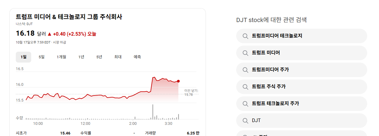 | 혼돈의 시장 속, <strong>트럼프 미디어 & 테크놀로지 그룹(DJT)</strong>의 주가 향방은? 정치와 투자의 교차점에서 서다 (0) | 2025.10.21 |