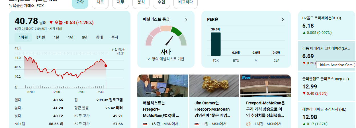 - FCX의 주가(2025년 9월 30일 기준 $39.22)는 그래스버그 사고로 인해 과매도 상태일 가능성이 높습니다.