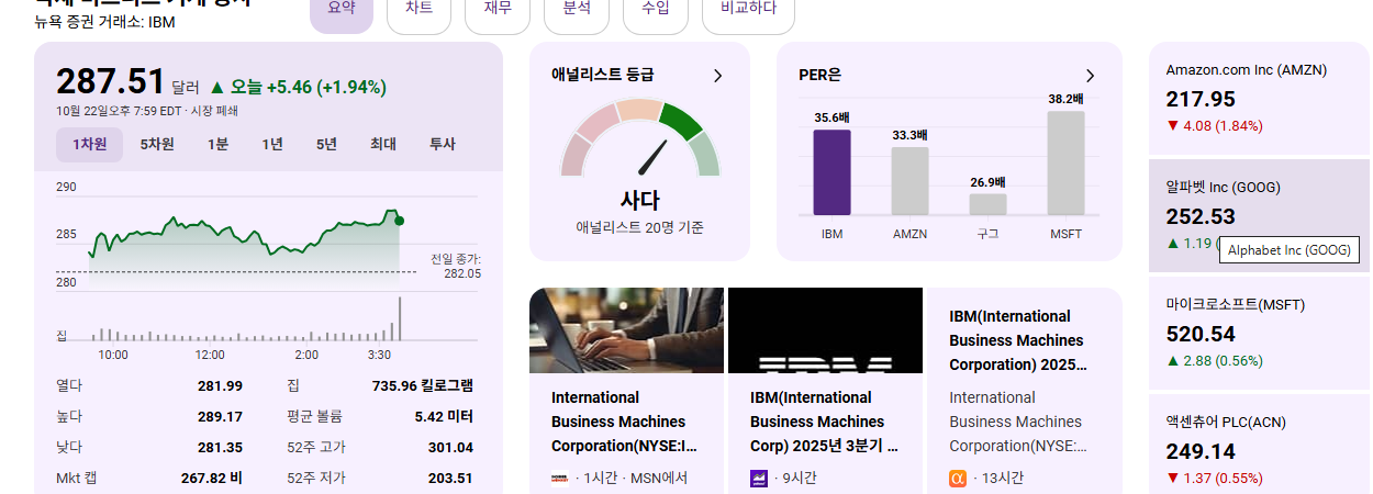- 성장 모멘텀: 전체 매출과 EPS의 선방은 IBM이 컨설팅 서비스 및 하이브리드 클라우드 전략을 통해 여전히 견고한 실적을 내고 있음을 시사합니다. 특히, 효율적인 비용 관리와 핵심 사업 부문의 성장이 긍정적인 영향을 미쳤을 수 있습니다.