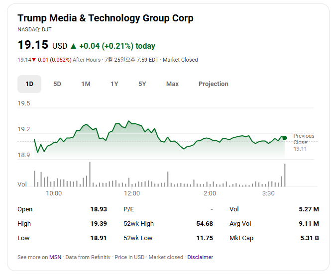 - 강력한 정치적 연관성: DJT는 전 미국 대통령 도널드 트럼프와 밀접하게 연관된 회사입니다. 그의 정치적 활동, 대선 캠페인, 그리고 대중적 발언 등이 주가에 매우 강력한 영향을 미칩니다. 이는 전통적인 기업 펀더멘털 분석만으로는 예측하기 어려운 독특한 리스크이자 기회 요인입니다.