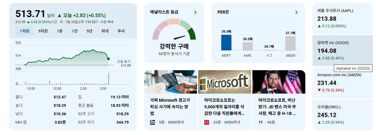 - 장기적인 투자 매력은 여전: 마이크로소프트는 클라우드 컴퓨팅(Azure), 생산성 소프트웨어(Office 365), AI, 게임 등 다양한 성장 동력을 보유하고 있는 초우량 기업입니다. 보안 문제는 모든 기술 기업이 직면하는 리스크이며, MSFT는 이를 해결할 충분한 역량을 가지고 있습니다.