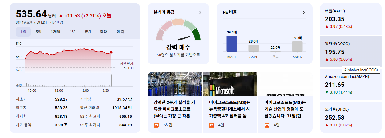 Yahoo Finance에서 2025년 8월 5일 보도한 기사에 따르면, 마이크로소프트(MSFT)에 대해 투자자 신뢰 증가와 예상치를 뛰어넘는 2분기 실적으로 주가가 상승했다고 합니다. 특히 애저(Azure) 클라우드 매출이 크게 성장했으며, 강력한 엔터프라이즈 AI 전략이 성과를 보였습니다. 본 블로그에서는 해당 기사 내용을 바탕으로 MSFT에 미치는 영향을 평가합니다.