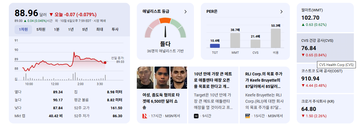 - 보수적 투자자: TGT는 안정적인 배당 수익과 50년 이상 지속된 배당 성장 이력을 가진 대표적인 '배당 성장주'이자 '경기 방어주'입니다. 꾸준한 배당금 수령과 자본 보전을 목표로 하는 장기 보유 전략이 적합합니다.