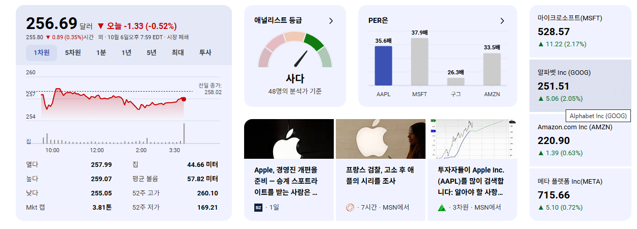 - 경쟁사 비교: AAPL이 버핏의 언급을 통해 다시 한번 미국 최고의 우량 기업 중 하나로 각인되면서, 이는 경쟁사(예: 삼성, 구글, 마이크로소프트) 대비 Apple의 브랜드 가치와 시장 지배력을 간접적으로 강화합니다. 강력한 재무 상태와 혁신 역량은 여전히 업계 최고 수준입니다.