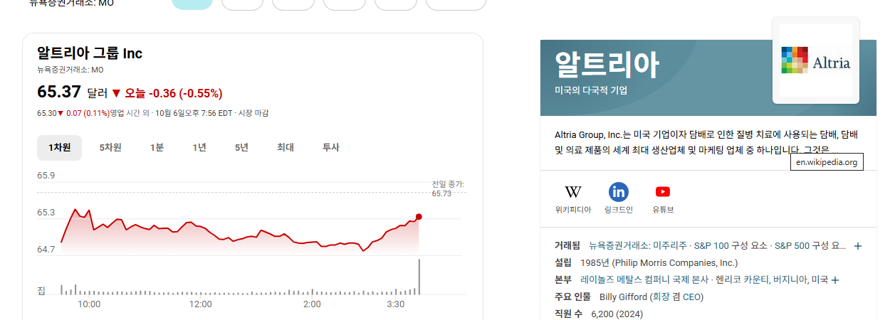 Yahoo Finance에서 2025년 10월 6일 보도한 기사에 따르면, 알트리아 그룹(MO)은 오랜 기간 배당을 꾸준히 지급해 온 배당 챔피언 기업으로, 담배 사업의 견조한 이익을 바탕으로 비연소 담배 제품 및 에너지 분야로의 확장을 모색하고 있습니다. 특히 KT&G와의 파트너십을 통해 새로운 성장 동력을 확보하고 있으며, 이는 지속적인 이익 창출과 주주 가치 환원에 기여하고 있습니다. 본 블로그에서는 해당 기사 내용을 바탕으로 MO에 미치는 영향을 평가합니다.