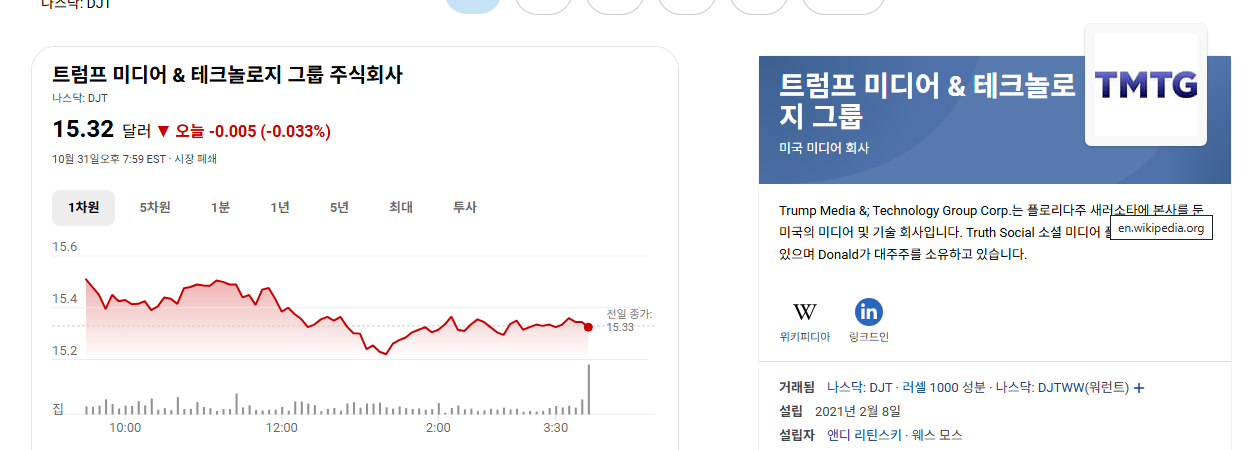 - 투자 조언: DJT는 고위험-고수익 특성을 가진 종목이므로, 잃어도 괜찮은 수준의 자본으로 접근하는 것이 현명합니다. 충분한 조사(due diligence)와 개인의 투자 성향에 맞는 전략을 수립하는 것이 중요합니다.