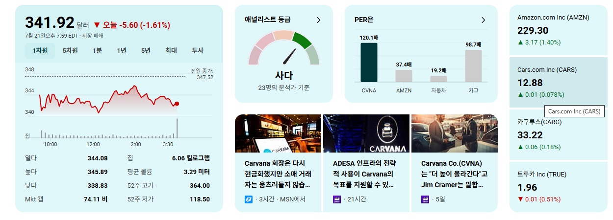 - 중고차 시장은 금리, 소비심리 등 **거시 경제 변수에 민감**하므로, 시장 환경 변화가 CVNA의 사업에 미칠 영향을 주시해야 합니다.