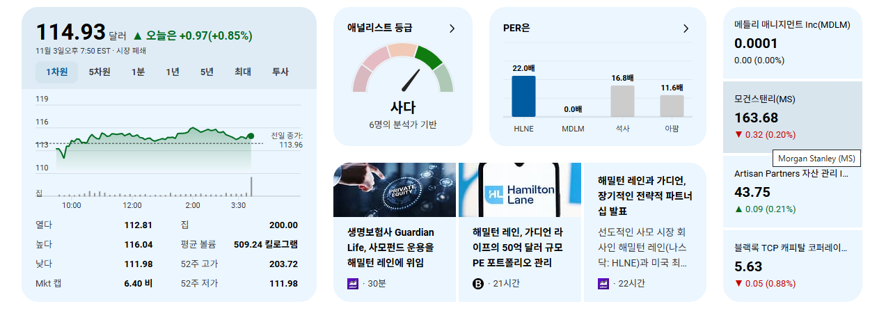 - 3년 이상 장기 투자 시, HLNE는 글로벌 대체 투자 시장의 성장을 통해 꾸준한 가치 상승을 기대할 수 있는 매력적인 종목으로 평가됩니다. 회사의 전략적 파트너십 역량과 확장된 서비스 범위가 핵심 성장 동력이 될 것입니다.